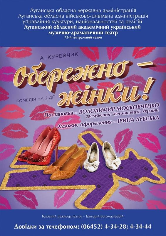 Луганський обласний академічний український музично-драматичний театр представляє виставу “Обережно - жінки!” за п’єсою Андрія Курейчика.