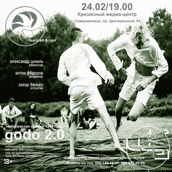 В субботу, 24 февраля 2018 года в 19:00 в Кризисном медиа-центре (г. Северодонецк, пр-т Центральный, 54) впервые после большого перерыва спектакль Театра Art&Гарт “godo 2.0”.