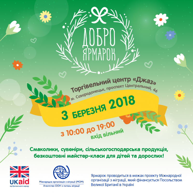 На Доброярмарок запрошують Міжнародна організація з міграції (МОМ) та Посольство Великої Британії в Україні.