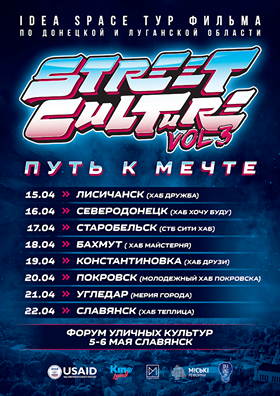По итогам тура "IDEA SPACE" будет проведен "Форум уличных культур", который пройдёт 5-6 мая в Славянске.