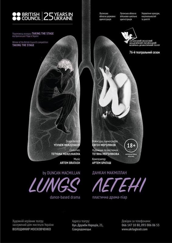 У вересні 2016 року в Києві відбувся міні-фестиваль британської драми Taking the Stage. В ньому 10 українських театрів представили своє бачення уривків з п’яти п’єс сучасних британських авторів. Постановки оцінювала експертна комісія, в якій були театральні діячі та критики з України, а також представники британських театрів. До числа чотирьох переможців потрапила і спільна заявка Луганського українського театру та режисера Євгена Мерзлякова на постановку п’єси відомого британського режисера і драматурга, лауреата багатьох премій, автора п’єс, які досліджують батьківські почуття, стан депресії, зміни клімату Данкана Макміллана «Легені». «Самобутня, нешаблонна історія кохання… брутально чесна, гостра та сучасна. Це голос покоління, для якого невизначеність – це спосіб життя», – написала про п’єсу «The Guardian».