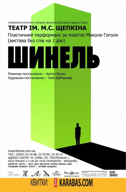 До вашої уваги вистава Сумського обласного академічного театру драми та музичної комедії ім. М.С. Щепкіна, М. Гоголь «Шинель»