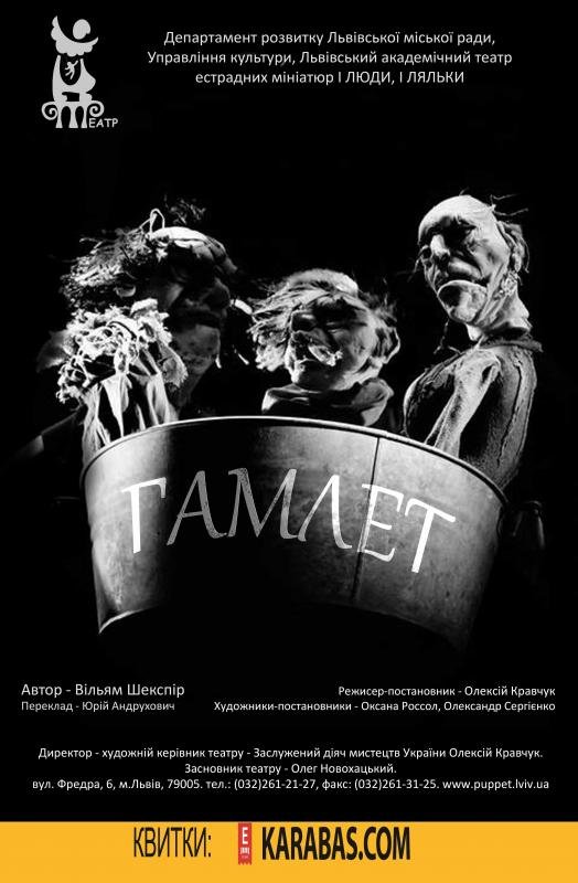До вашої уваги вистава Львівського академічного театру естрадних мініатюр «І люди, і ляльки», В. Шекспір, переклад Ю. Андруховича «Гамлет»