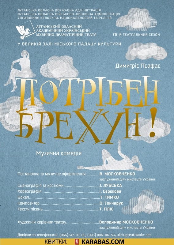 Луганський обласний академічний український музично-драматичний театр запрошує на виставу " Потрібен брехун" Музична комедія.