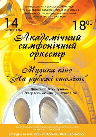 Увага! 14 листопада о 18.00 Академічний симфонічний оркестр Луганської обласної філармонії подарує шанувальникам сучасної музики можливість відвідати концерт "На рубежі століть", що відбудеться в концертній залі Сєвєродонецького обласного музичного училища ім.С.С.Прокоф'єва.