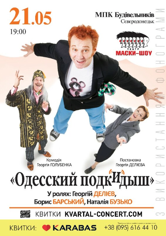 Краматорськ! Бахмут! Сєвєродонецьк! Харків! До вас їде «Одесский Подкидыш»! Приходь і насолоджуйся унікальним стилем театру «Маски», в основі якого лежать класичні традиції театру абсурду, театру Дель Арте, європейського мистецтва!