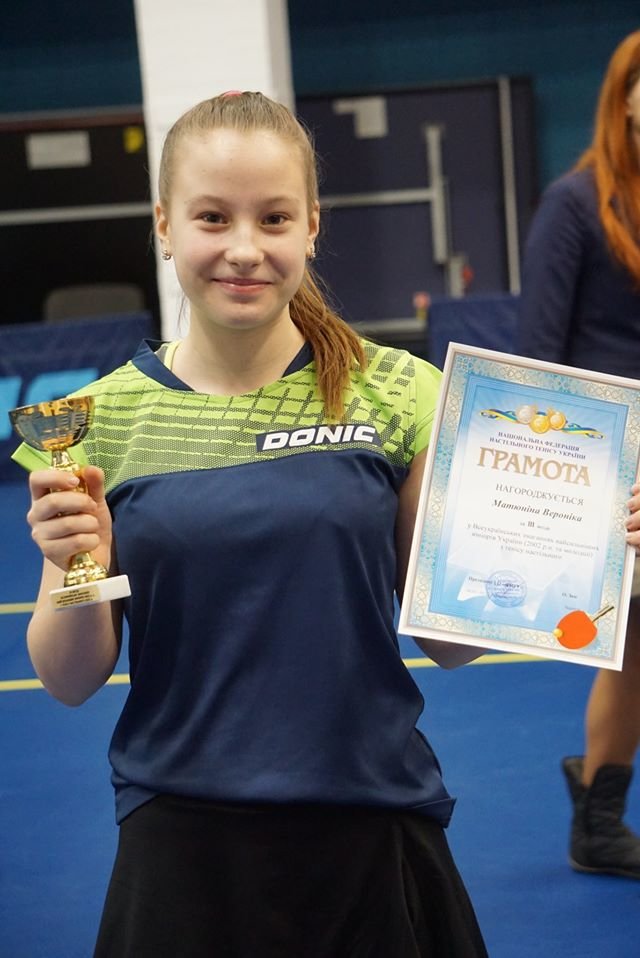 С 30 января по 2 февраля в городе Чернигов прошли Всеукраинские соревнования сильнейших юниоров Украины (2002 года рождения и младше) по настольному теннису. Луганскую область на соревнованиях представляла Вероника Матюнина. Так, по результатам соревнований, представительница Луганщины заняла третье место и вошла в ТОП-12 сильнейших юниорок Украины до 18 лет.